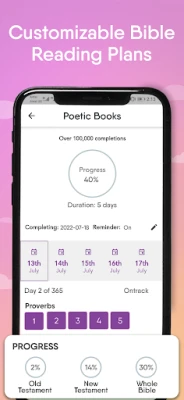 * Build a healthy bible reading habit with custom bible reading plans
