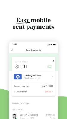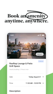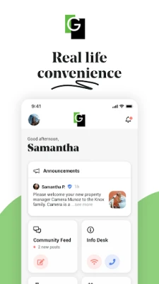 KEY FEATURES • Pay rent right from the app with your credit card, debit card, or e-check and set up scheduled payments to avoid late fees. • Submit maintenance requests with photos and videos and automatically receive status updates. • Sign up for events, and reserve amenities (where applicable). • Receive package delivery notifications in-app, through email or via text (where applicable)