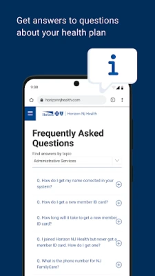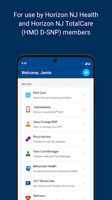 With the free Horizon NJ MyCare app, Horizon NJ Health and Horizon NJ TotalCare (HMO D-SNP) members can: