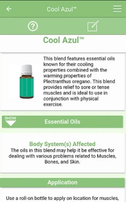 This app combines information from the authoritative Reference Guide for Essential Oils (by Connie and Alan Higley) with convenient search, easy navigation, and personal note-taking features. Use the app anytime, anywhere to quickly find and confidently use recommended single oils and blends for hundreds of health conditions and wellness solutions.