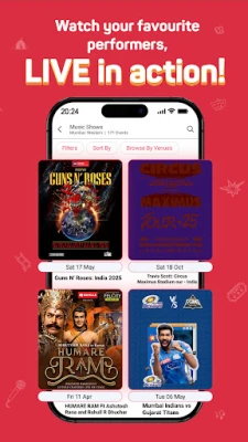BookMyShow has made going out an enriching experience with the big events in the country like Guns N’ Roses: India 2025, Travis Scott: Circus Maximus Stadium Tour - India, Humare Ram, Papa Yaar by Zakir Khan, Jo Bolta Hai Wahi Hota Hai feat Harsh Gujra. Just browse a wide range of events in your city and stay entertained.
