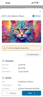 Stay ahead of production gaps with real-time notifications. Receive alerts on ink supplies, media status, and potential print quality issues, allowing you to take proactive measures and avoid interruptions.