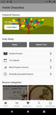 * Quick access to classes for timely classes - today's Tanya, upcoming Yom Tov and more