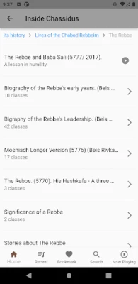 * Offline navigation of all lesson categories and subcategories (e.g. Stories, Alter Rebbe).