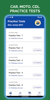 This app includes questions based on official New Jersey DMV state manual. The app allows you to prepare and practice for the Car, Motorcycle and Commercial Driving license (CDL) driver’s license test for New Jersey State and all practice tests are based on the latest manuals. So if you are searching for DMV driver’s license test preparation – this is the perfect DMV driver’s license test practice app for you. This app is a driver's license handbook manual to practice and prepare for DMV Knowledge Test Permit.