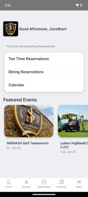 - Book Tee Times - Make dining reservations - Access your monthly statement - Update your profile picture - View member directory and contact info - Sign up for events - And more!